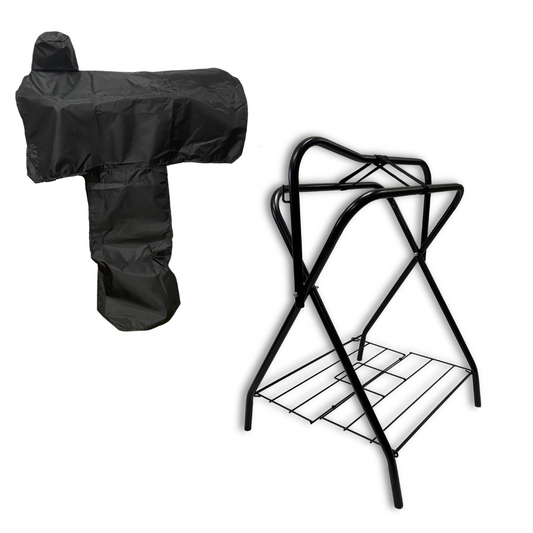 AJ Tack Freestanding Portable Horse Saddle Rack with Black Western Saddle Cover