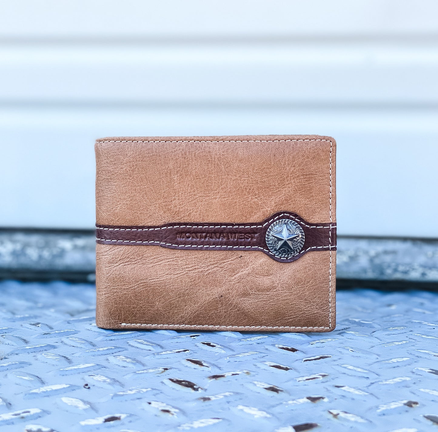 Montana West brand western style men's bi-fold wallet, made of genuine leather.