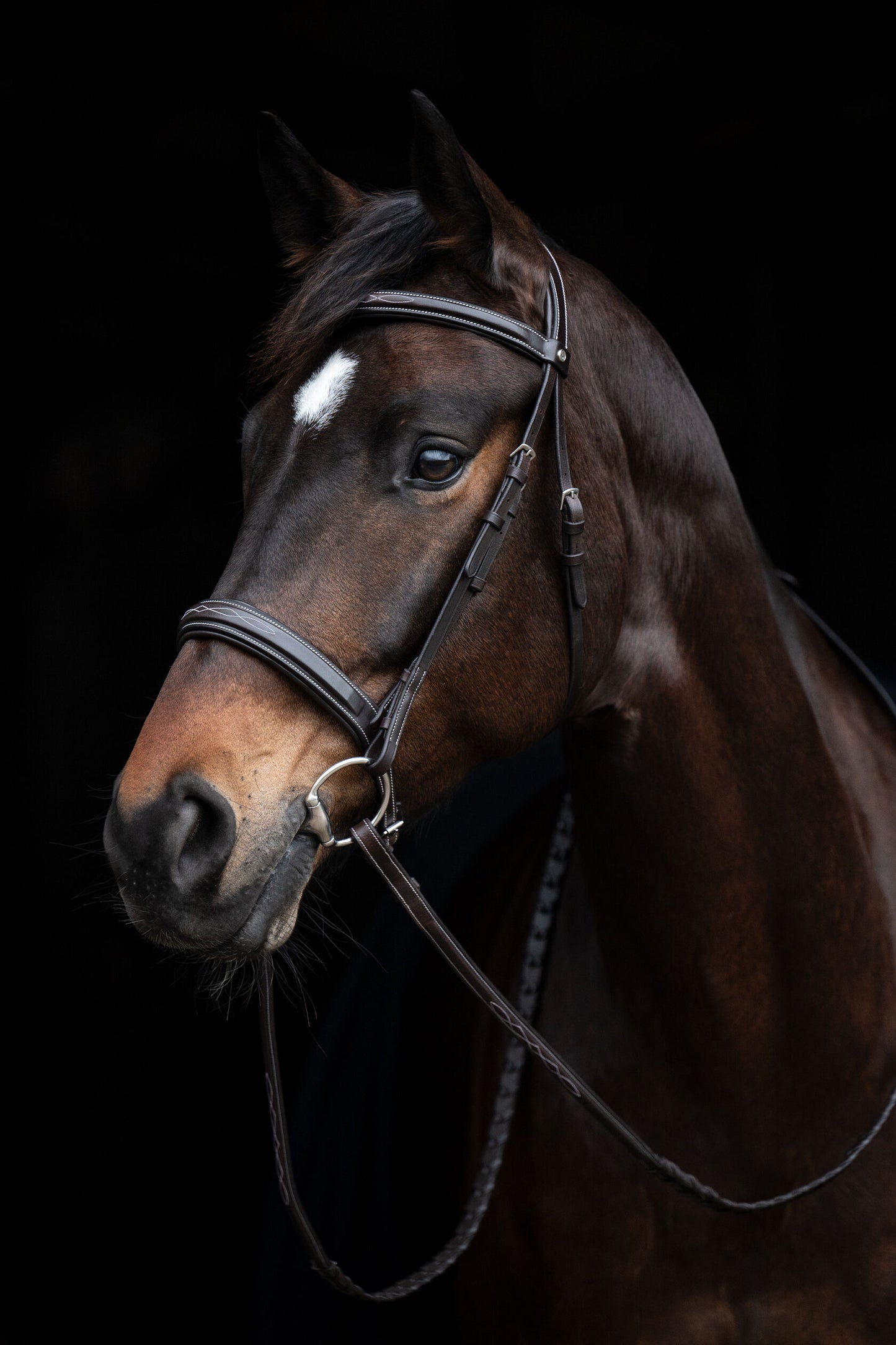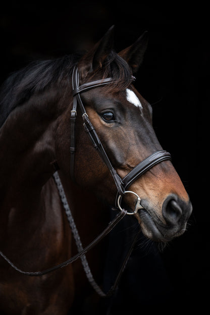 The Hunter 2 bridle is made of high-quality oiled leather and comes with an English noseband. For maximum comfort for the horse, the noseband and headpiece are softly padded. Decorative embroidery gives the bridle a modern touch. High-quality leather reins are included, bit sold separately.