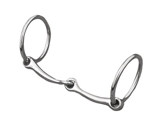 This nickel plated/malleable iron ring snaffle bit has a 5" mouth and 2-1/2" rings.