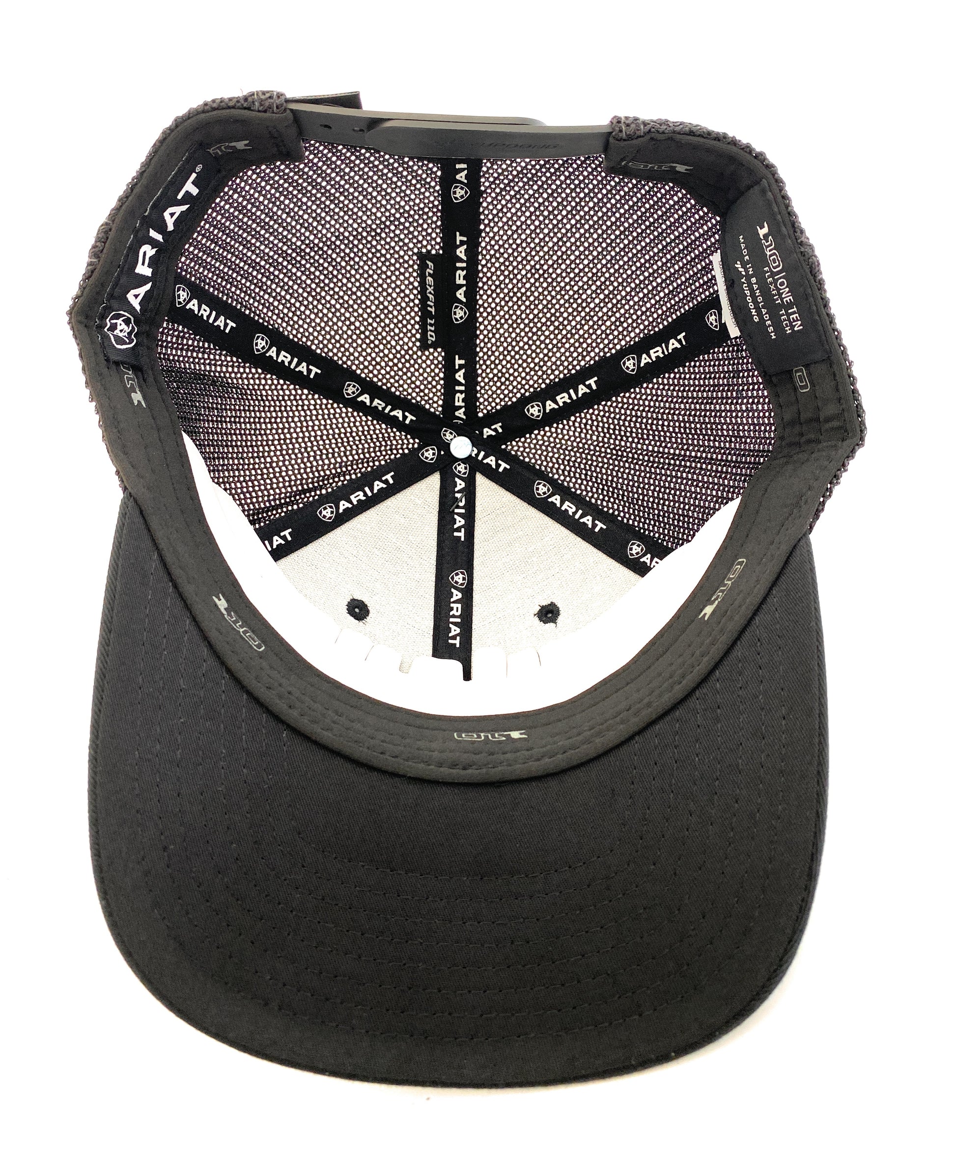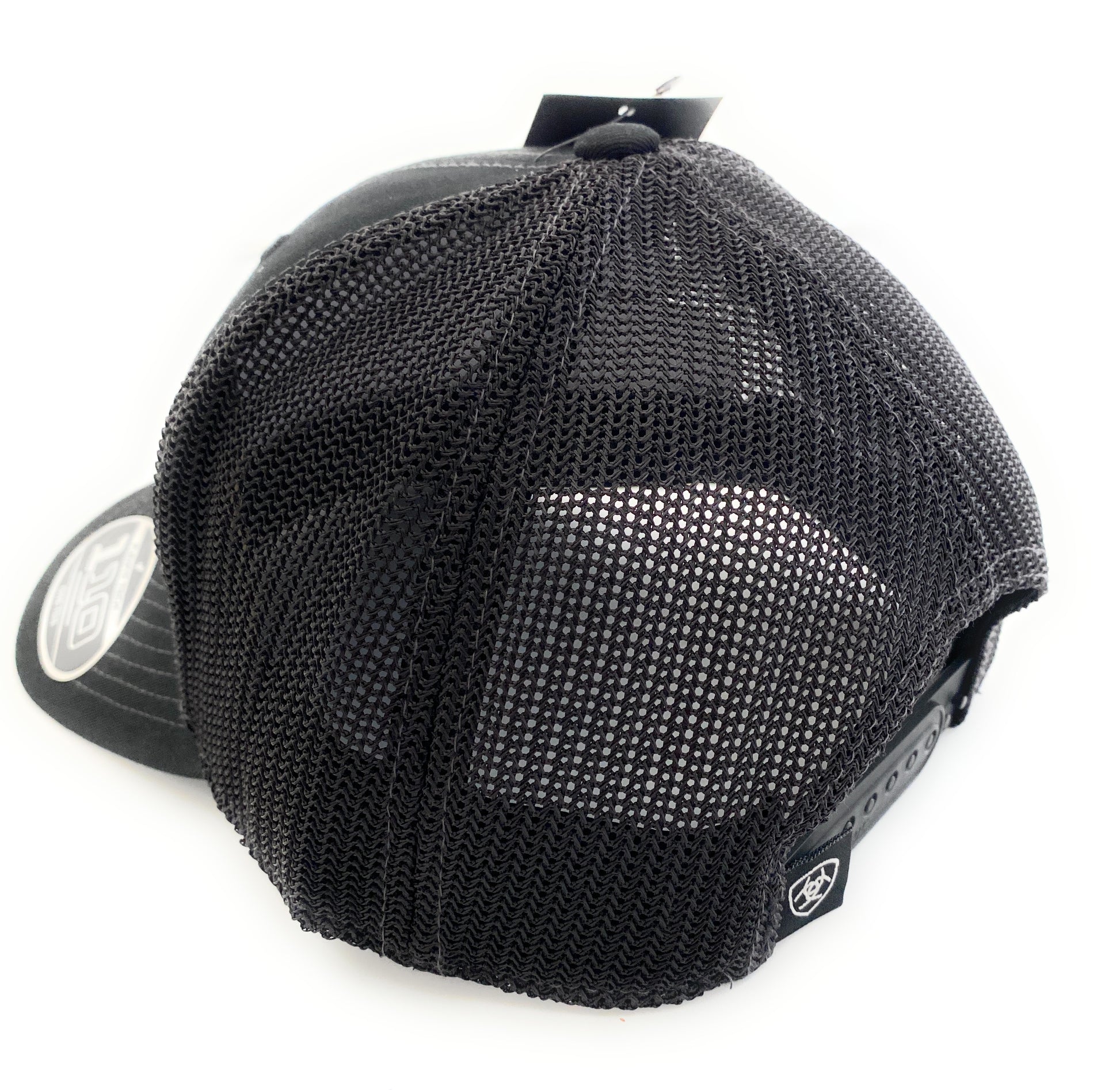This Ariat men’s cap by M&F Western Products® features Ariat text offset on brim with contrast stitching and a mesh snap back.