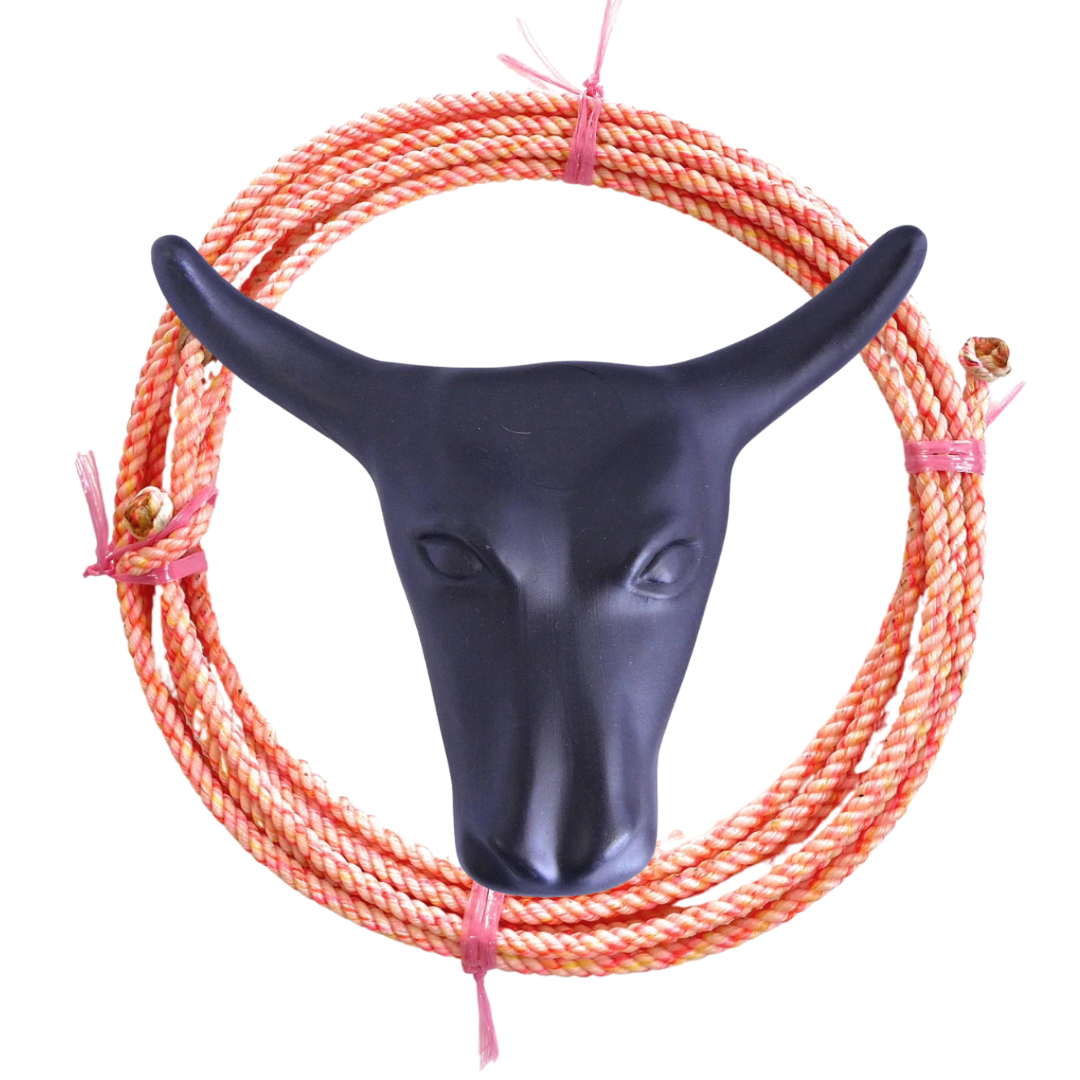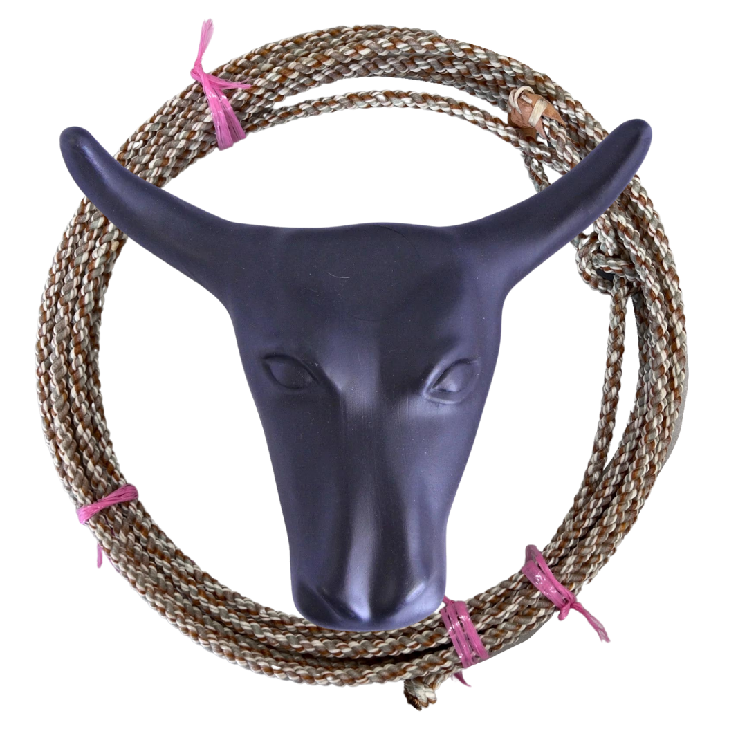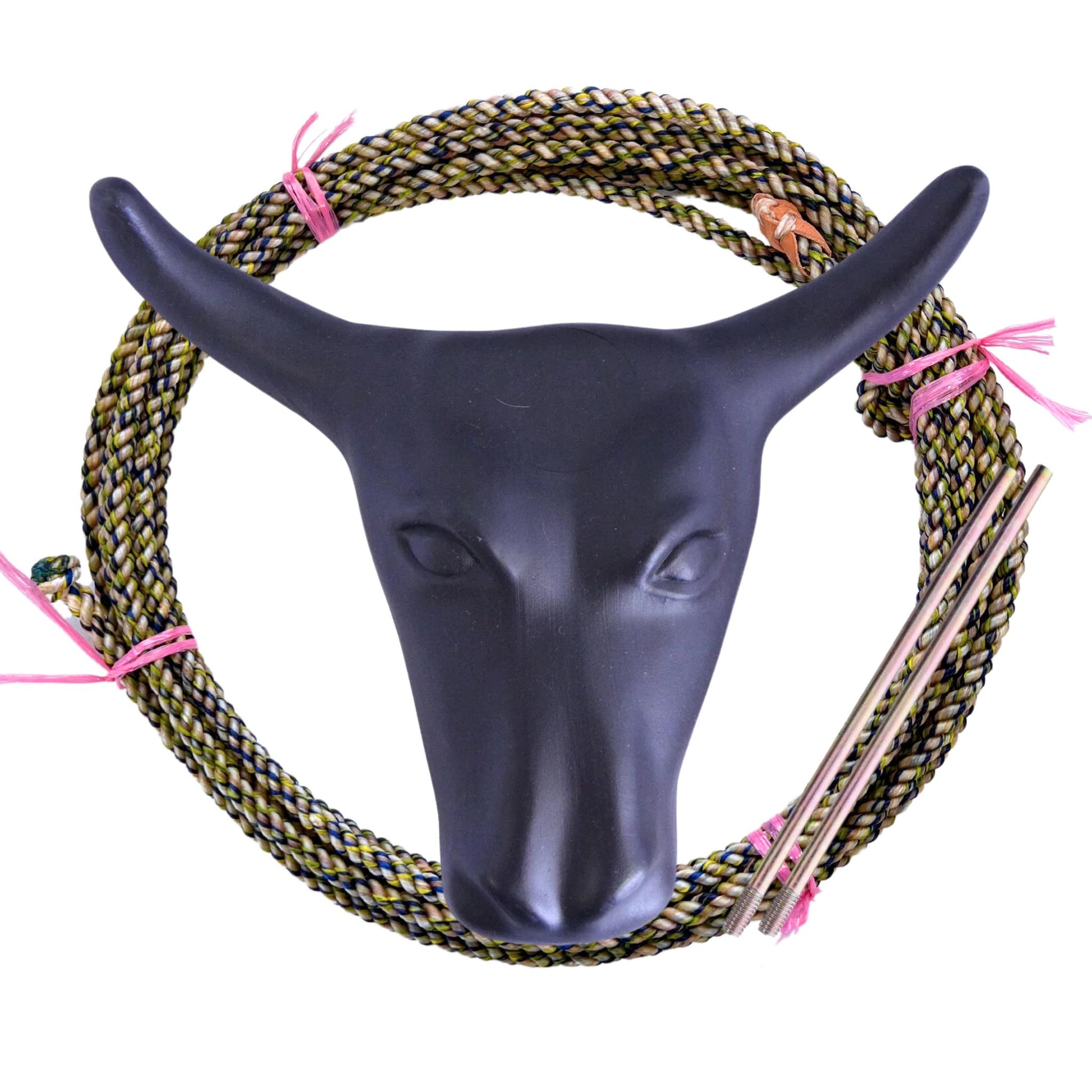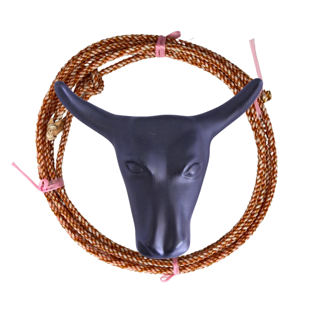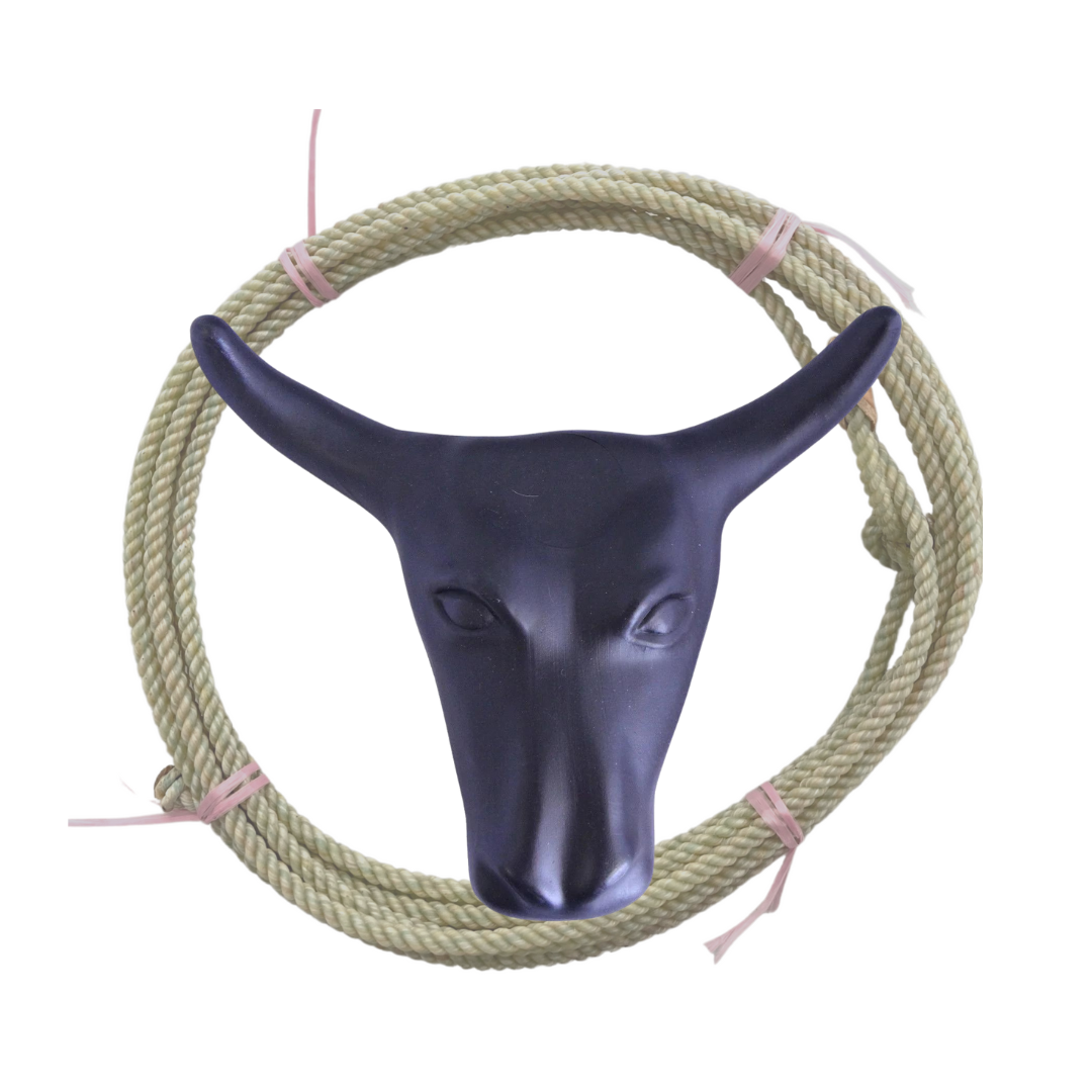 Introduce young ropers to the fundamentals of roping with the AJ Tack Junior Steer Head Dummy Set, a complete practice setup designed for durability, ease of use, and skill development. The junior-size steer head is made from heavy-duty polyethylene to withstand repeated practice sessions and outdoor use. It easily mounts to a standard hay bale using the included 7" steel rods, creating a stable and realistic practice target. The set also includes a 20-foot twisted poly-nylon kid’s lasso, lightly hand-waxed for improved grip and smoother handling. Finished with a hand-sewn leather burner for added authenticity and control, this set is ideal for helping young ropers build confidence, coordination, and proper technique.