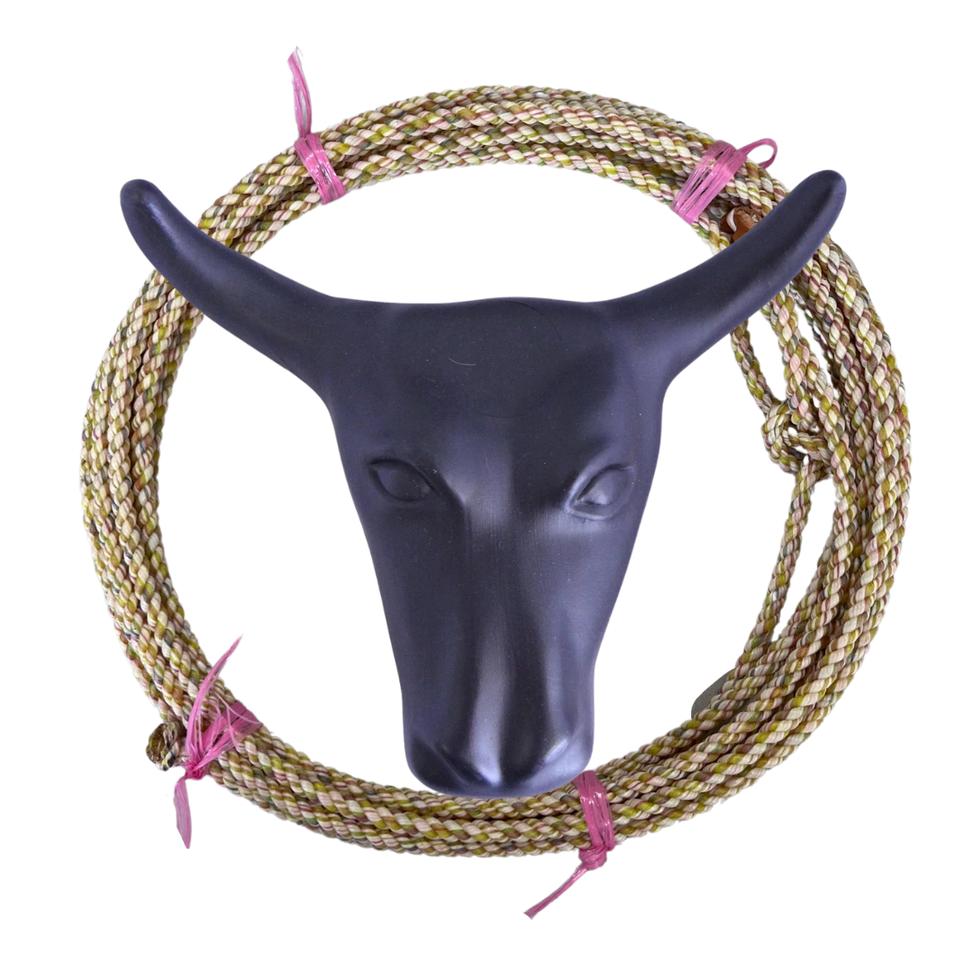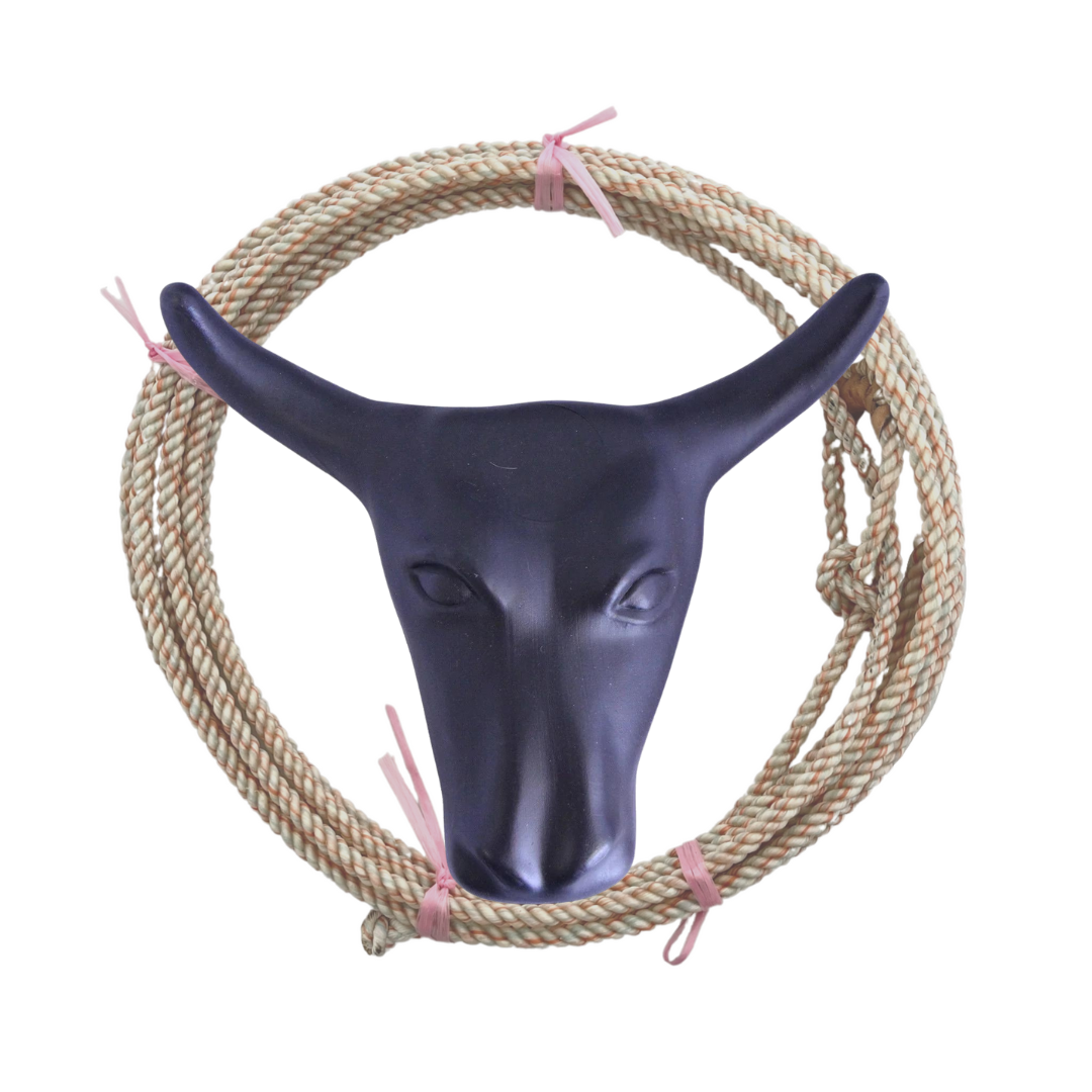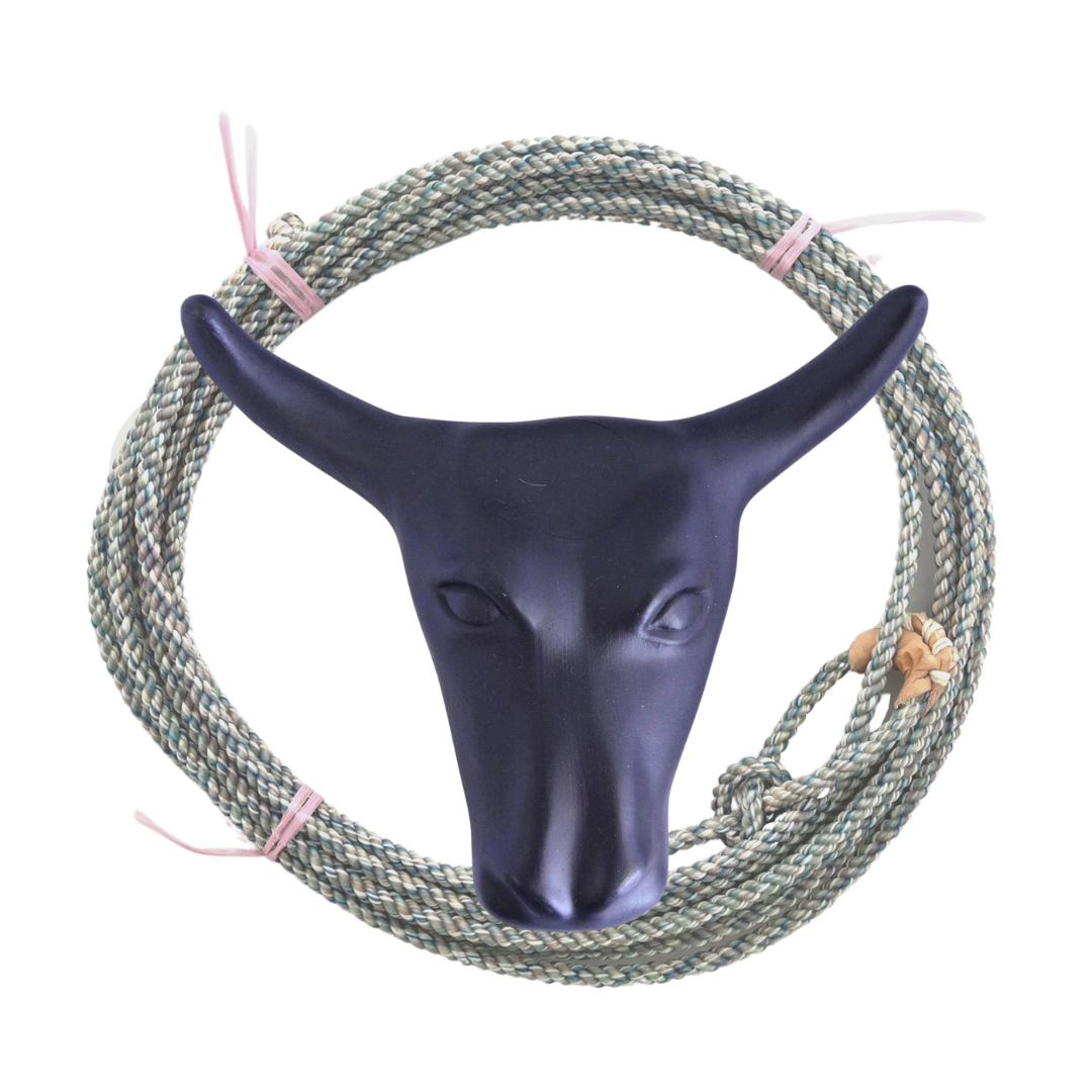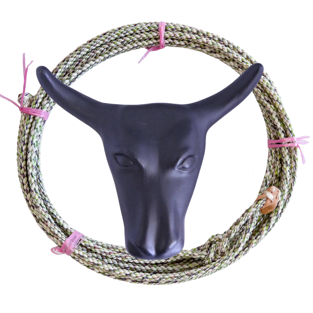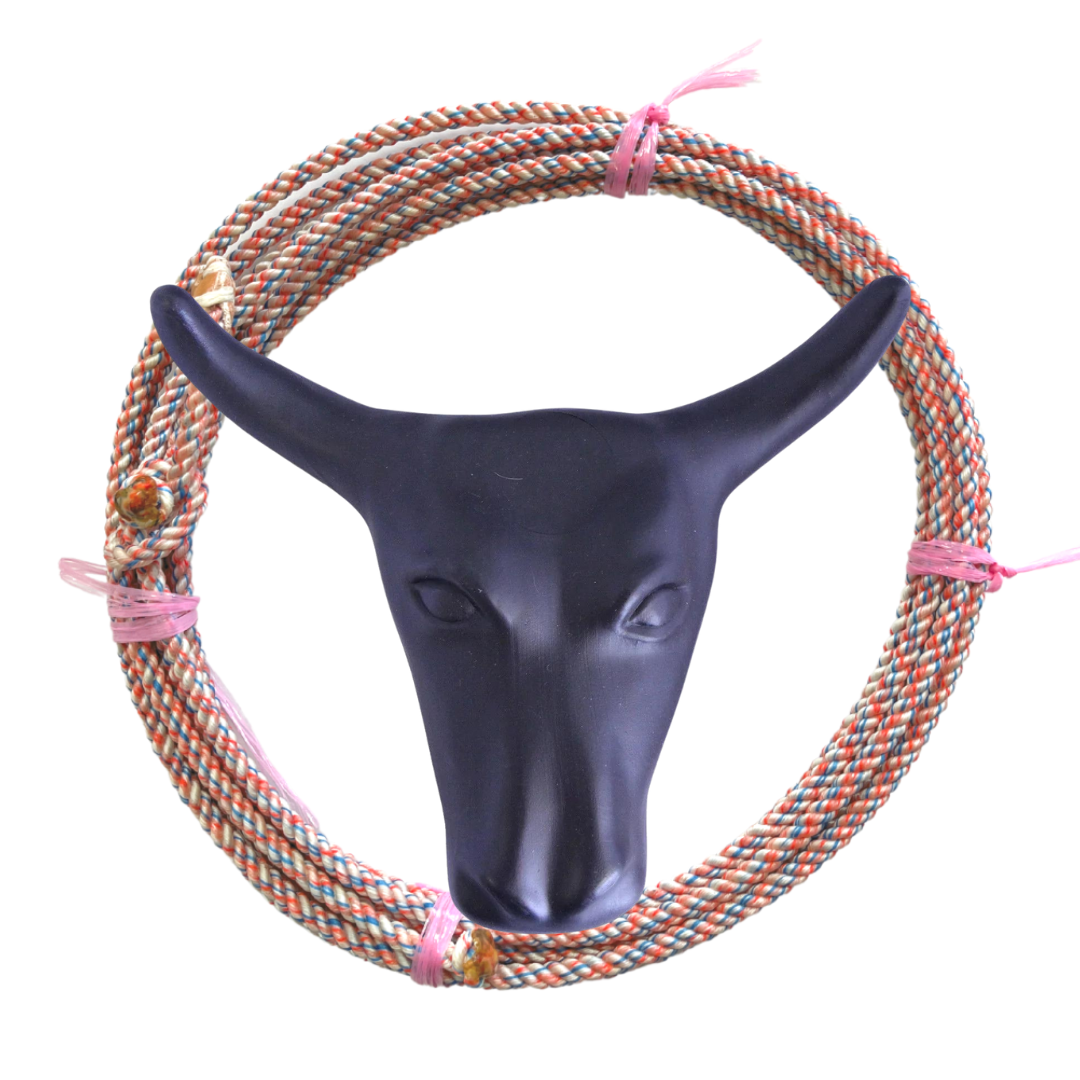 Introduce young ropers to the fundamentals of roping with the AJ Tack Junior Steer Head Dummy Set, a complete practice setup designed for durability, ease of use, and skill development. The junior-size steer head is made from heavy-duty polyethylene to withstand repeated practice sessions and outdoor use. It easily mounts to a standard hay bale using the included 7" steel rods, creating a stable and realistic practice target. The set also includes a 20-foot twisted poly-nylon kid’s lasso, lightly hand-waxed for improved grip and smoother handling. Finished with a hand-sewn leather burner for added authenticity and control, this set is ideal for helping young ropers build confidence, coordination, and proper technique.