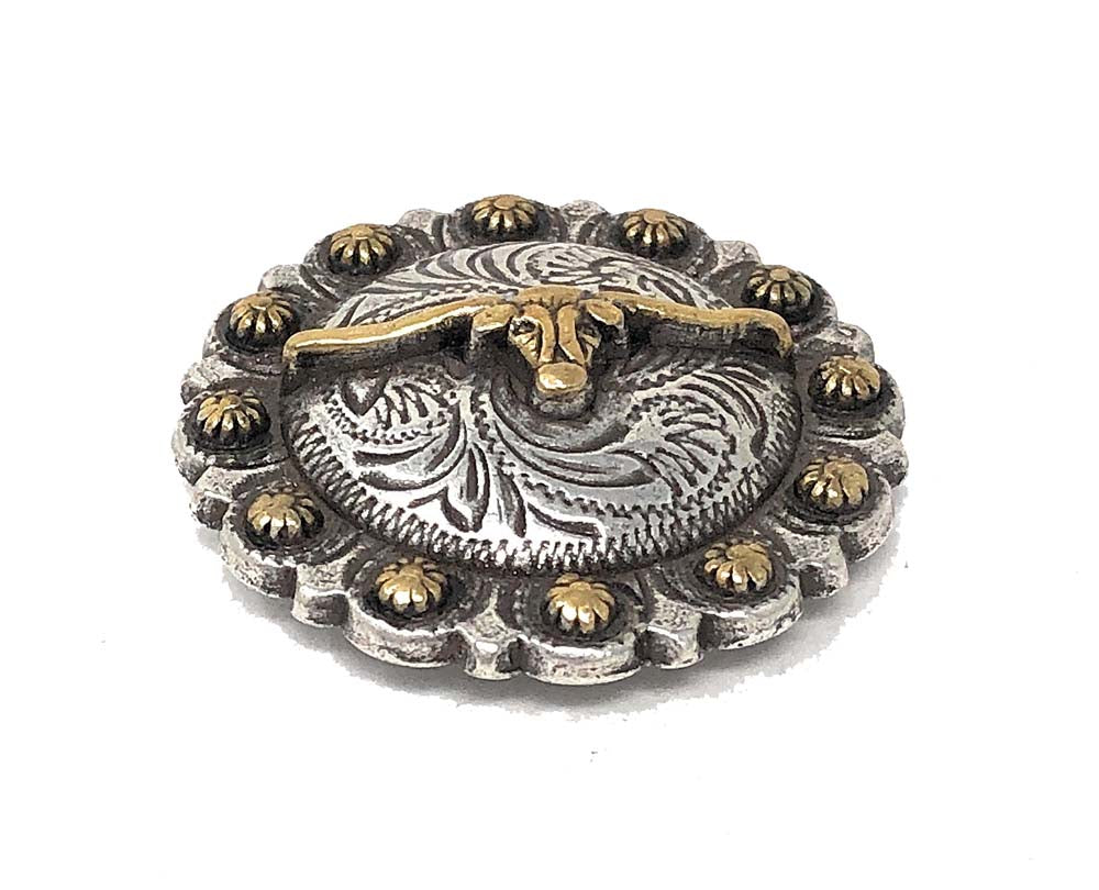 Add a rugged western flair to your gear with the AJ Tack Longhorn Steer Berry Concho. Featuring a detailed longhorn steer design set in a classic berry-shaped border, this hand-polished concho is made from durable zinc and is perfect for saddles, tack, belts, and more. Its 3⁄16" Chicago screw attachment ensures easy and secure installation.