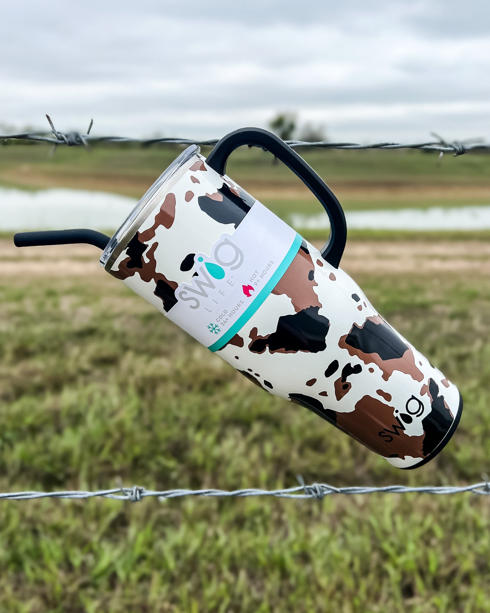 Mega sips, Mega chills! 🧊 Add a little "yeehaw" to your day with this cowhide print!
