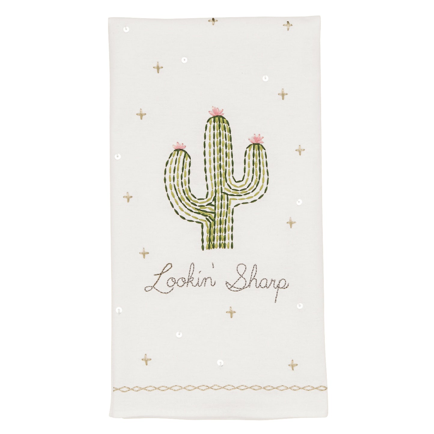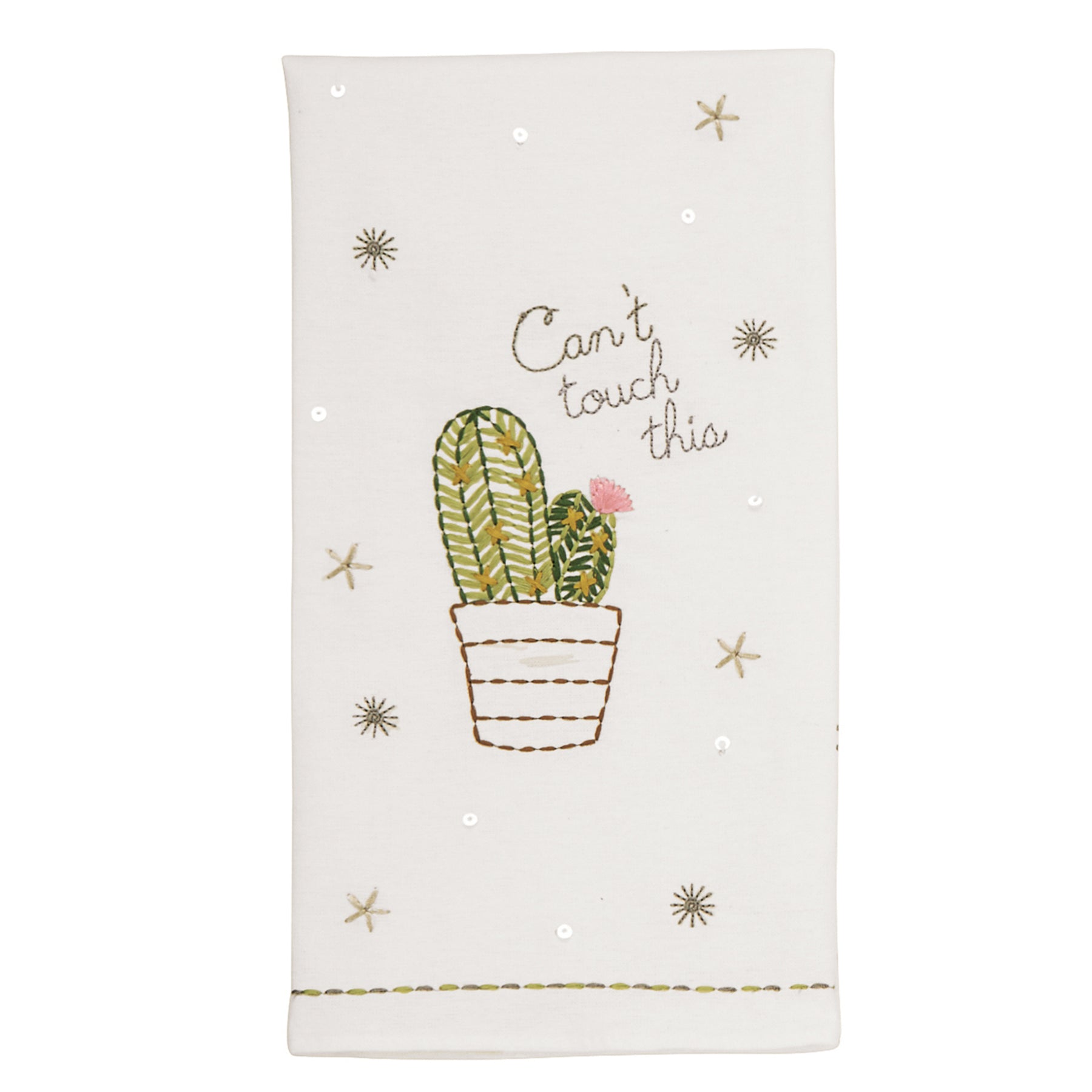 Mud Pie Embroidered Sequin Cactus Hand Towels