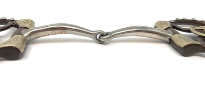 This elegant show snaffle bit combines functionality and style, featuring a 5" sweet iron mouthpiece with copper inlays for a responsive feel. The antique brown color and hand-engraved silver overlay, along with the 1 1⁄4" star concho, make this bit a standout piece. The offset Dee rings ensure a comfortable fit and prevent pinching for your horse.