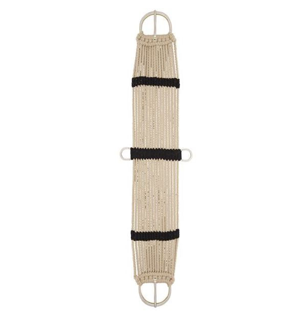 This rayon cinch by Weaver Leather is a traditional favorite great for all riding needs. Features woven-in dees for tie down strap and back cinch attachment. Durable nickel plated hardware. Tan with black accents.