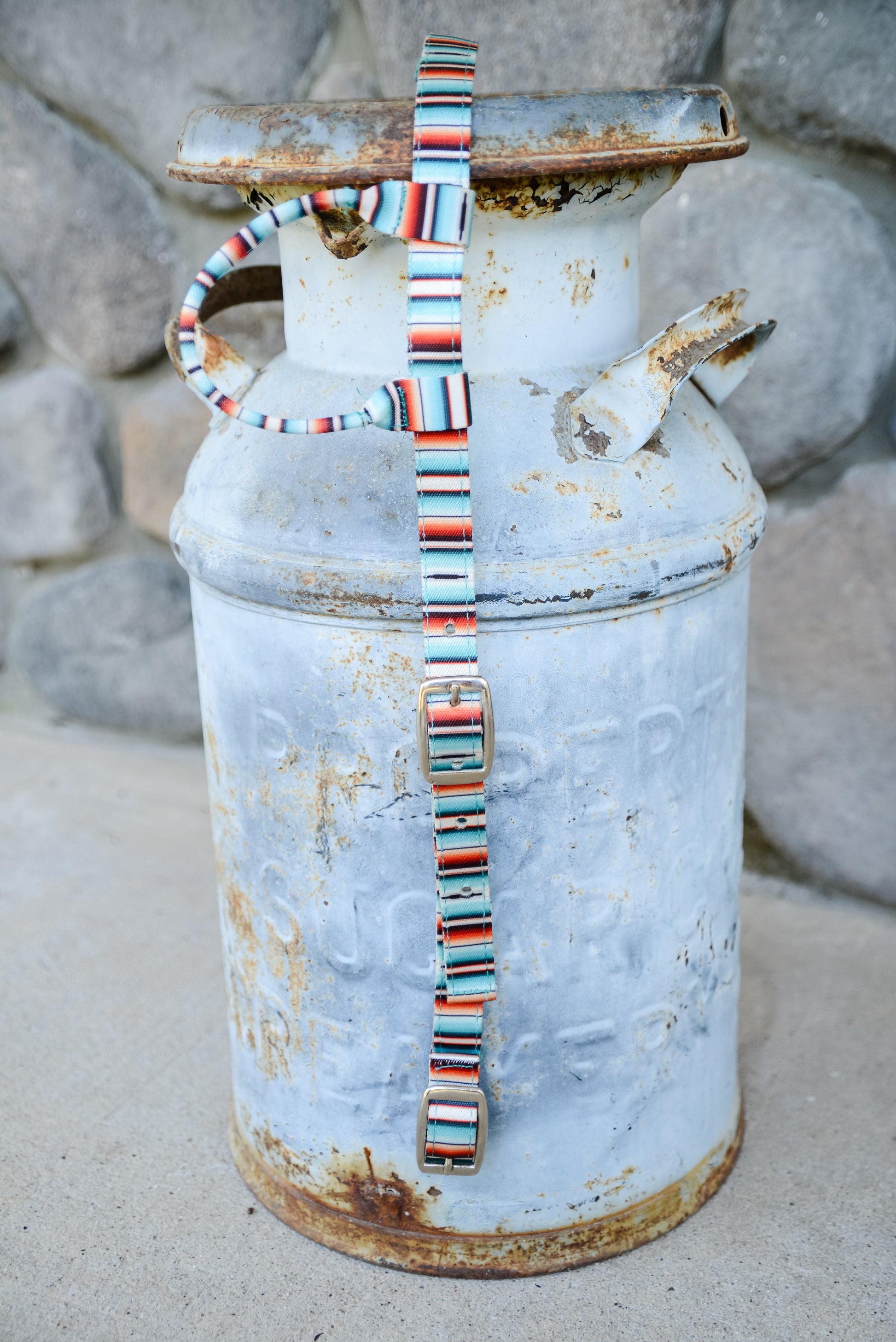 This headstall is made of soft and durable premium 2 ply nylon material. Easily adjusts on both cheeks with nickel plated buckles and easy change bit loops. Will adjust approx. 15" to 19" (crown to cheek).