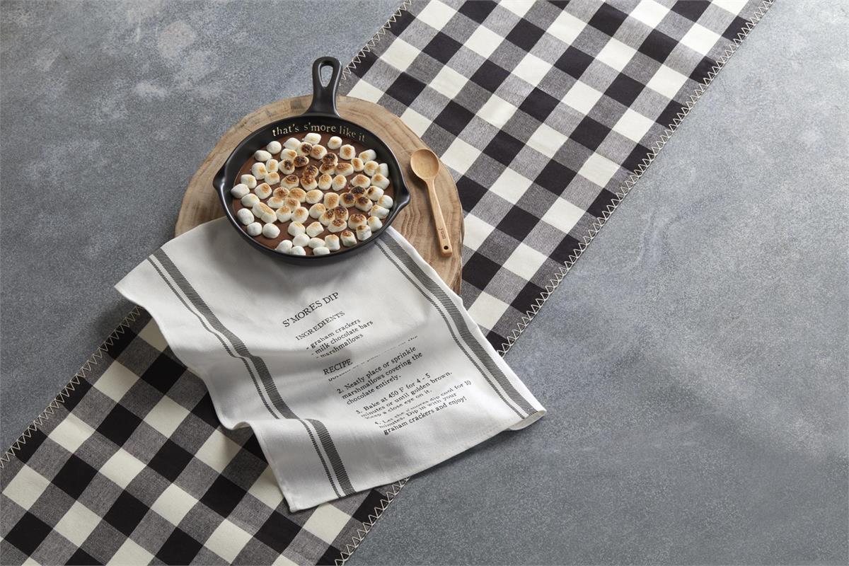 Whip up some s'mores dip with the Mud Pie S'more Dip Skillet Set. The three piece set comes with a stoneware skillet that reads "that's s'more like it". The skillet comes with an engraved wood spoon and cotton towel. The cotton towel features the recipe for a yummy S'mores Dip that you can make in this skillet. This makes a great gift! We love to pair with the ingredients - graham crackers, chocolate bars and marshmallows making it so easy to make after gifting!