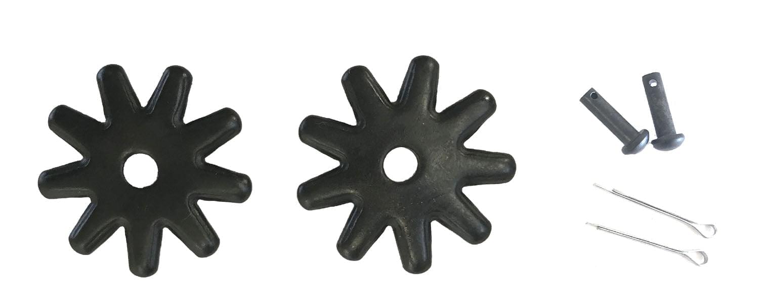 This package include one pair of black steel spur rowels, two spur pins and two cotter pins