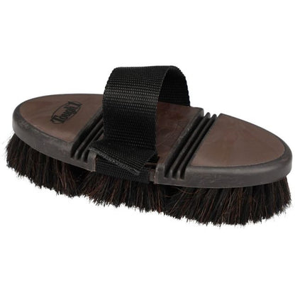 The Tough1 Great Grips Flex Horse Hair Brush is designed to provide a superior grooming experience. With two flexible points, this innovative brush contours to your horse’s body for even coverage and a more effective clean. The soft horsehair bristles make it the perfect finishing brush, gently removing fine dirt and dust for a sleek, polished coat. An adjustable nylon hand strap ensures a secure and comfortable grip while grooming.